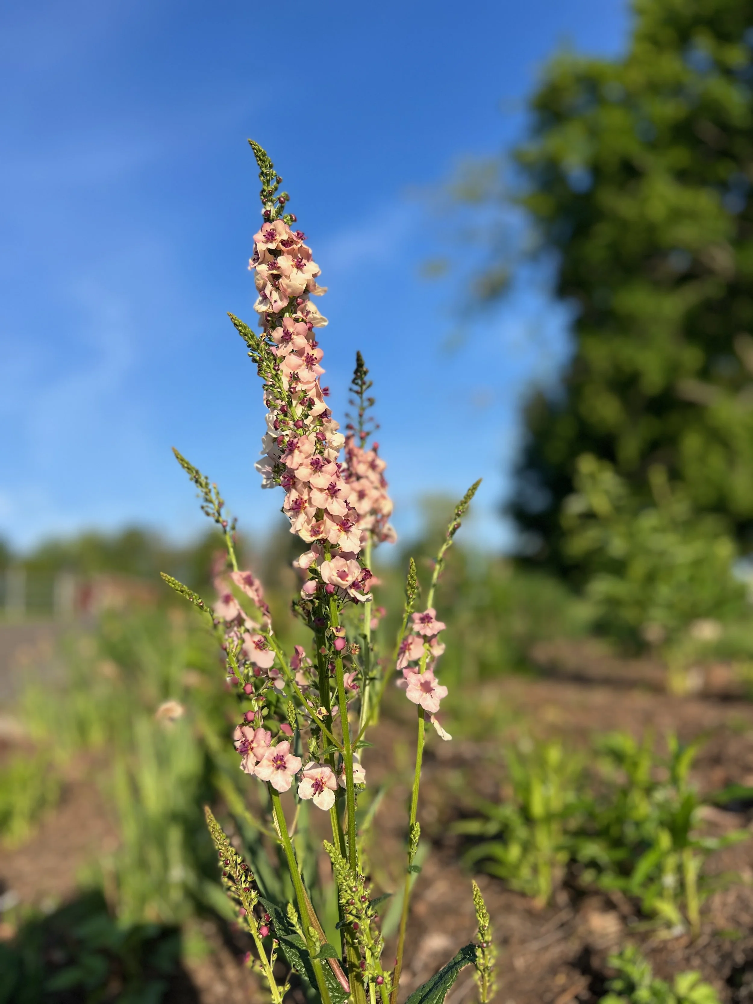 Verbascum is a beautiful perennial flower that is easily grown from seed. When I want to add to my verbascum collection, I start seeds in mid-February, and plant the seedlings out in late March. They bloom for me in mid-May. My favorite variety is “Southern Charm.” Verbascum adds such whimsy to the landscape, but if you do bring it inside, soak up its beauty because it does not have a long vase life.