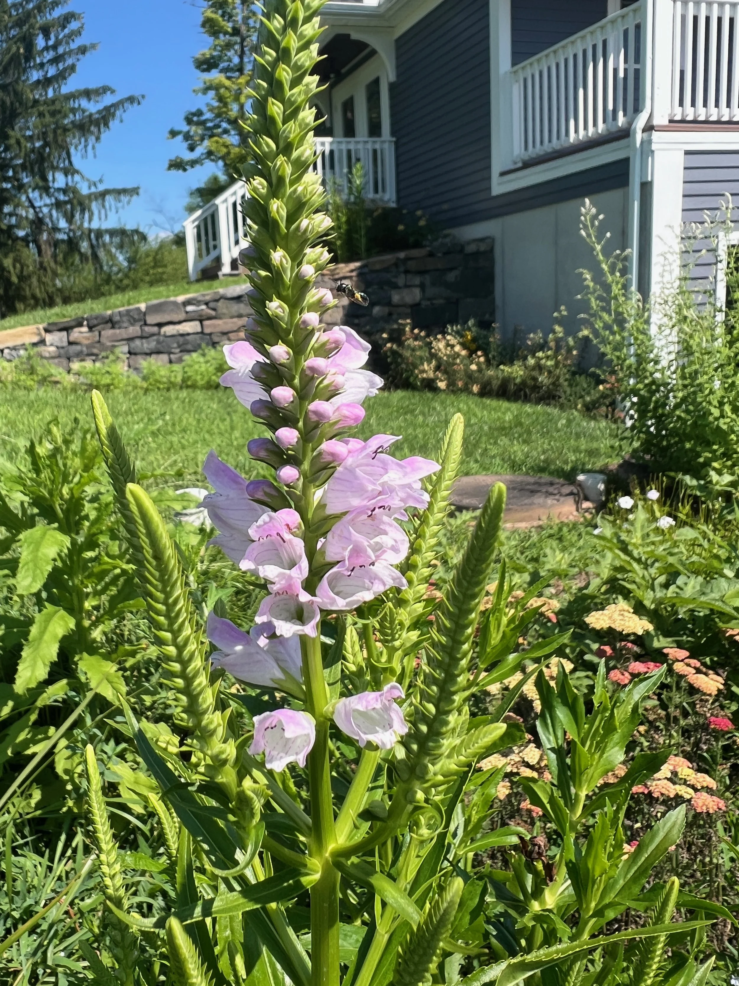 Obedient plant is another native that you might be able to source through a native plant sale. This one reminds me of snapdragons, but has all the biodiversity benefits of being native. It’s tall, hardy and blooms in a lovely plum shade. It also has the advantage of blooming in late July, early August when lots of other flowers are hiding from the heat.